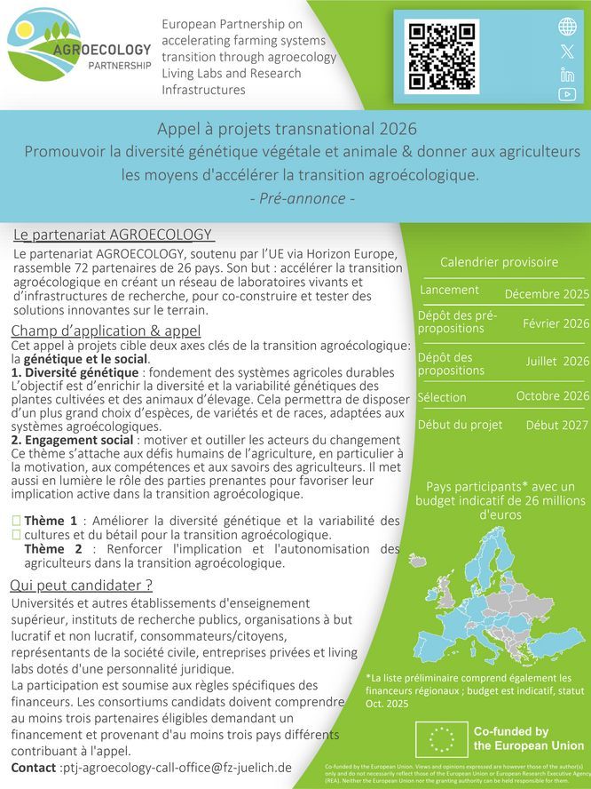 L’appel s’intitule « Fostering plant and animal genetic diversity and empowering farmers to accelerate the agroecological transition ».